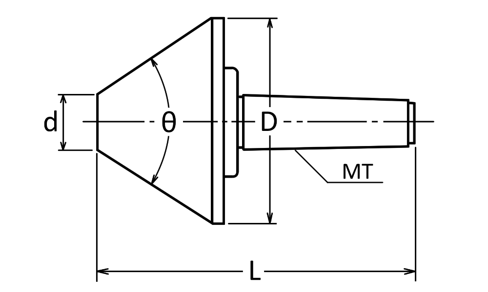 | 型式 | モールス テーパー | θ | d | D | L | 重量(kg) |