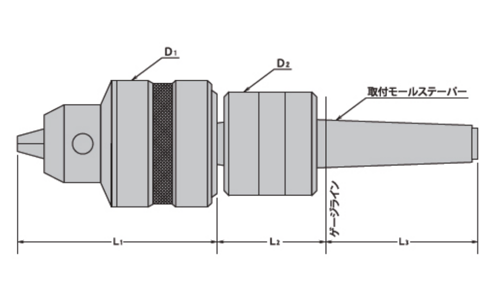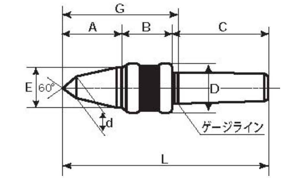 型式 | モールス テーパー | A | B | C | D | d | E | L | G(ゲージラインからの寸法) | 許容回転数(min -1) 参考値 | 質量kg |