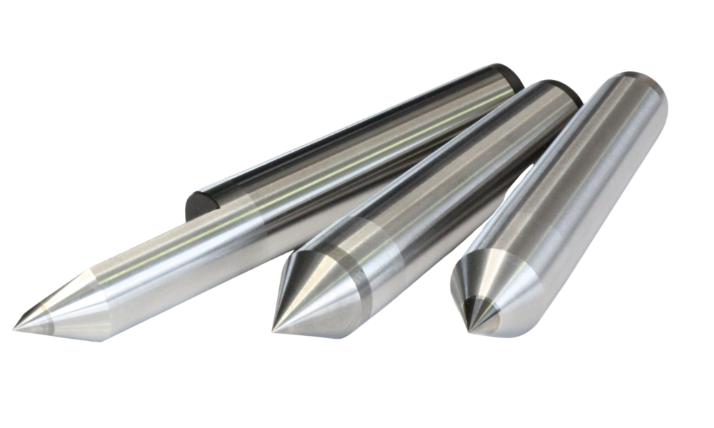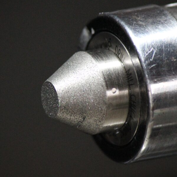 本製品は、焼入れ後に歪んだセンター穴の内径を修正するための電着ダイヤモンド工具です。