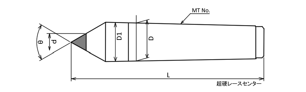 | 型式 | モールステーパ | θ | D | D1 | L | d(超硬径) |