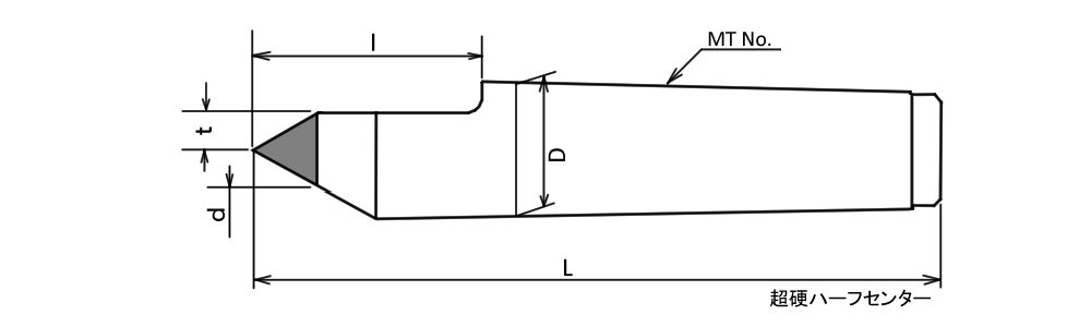 | 型式 | モールステーパ | t | d(超硬径) | D | l | L |