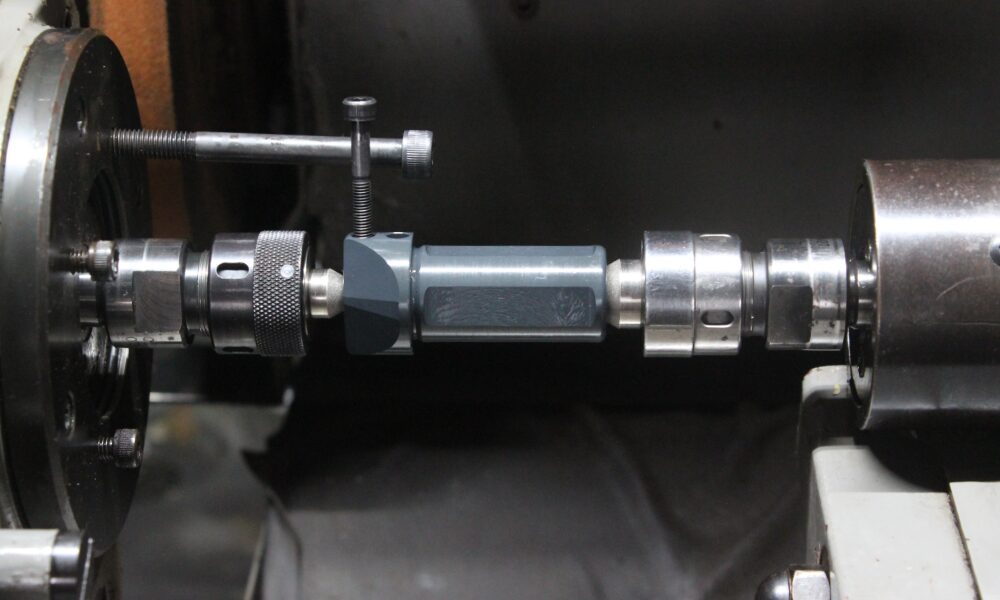 3.円筒研削盤で両センター加工をする際と同様の段取りを行います。