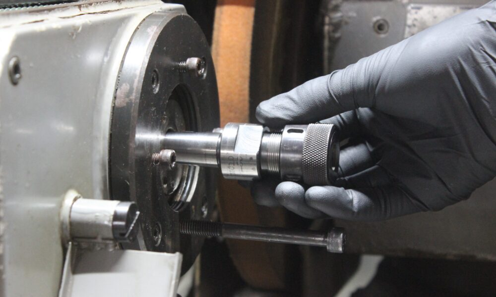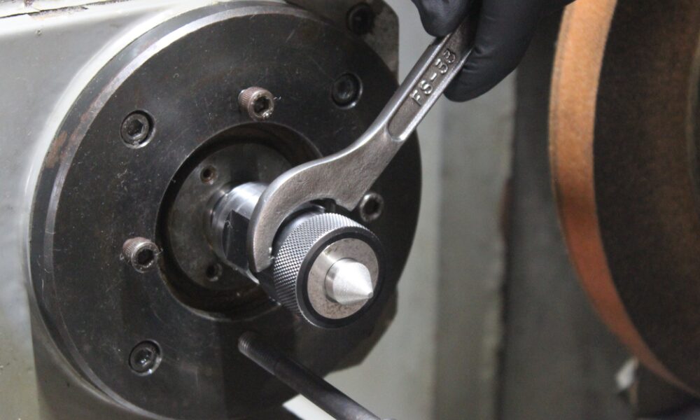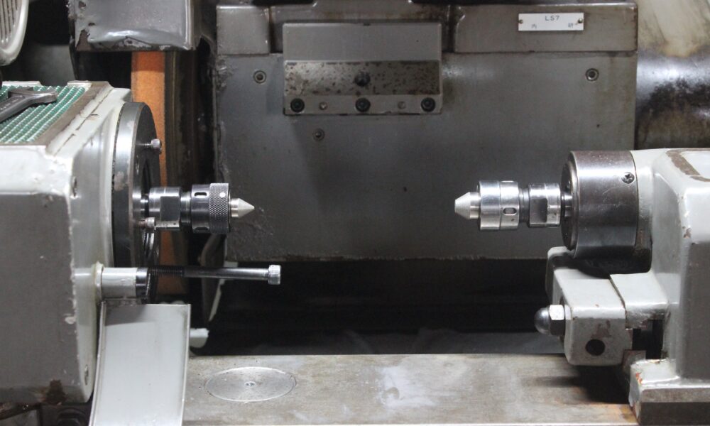 1.使用するコレットチャックを円筒研削盤の主軸と芯押し台にセットします。