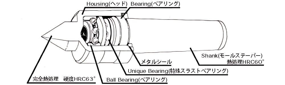 ヘッドドライビング機構を採用した小径ワーク用の高速型ライブセンターです。 NC用旋盤など、刃物の干渉に考慮した設計です。