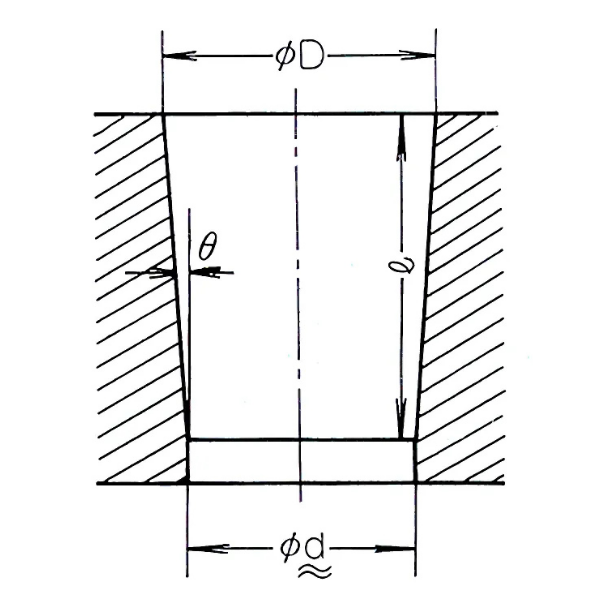 JT番号 | D | d | l | Taper on diameter | 片側角度θ |