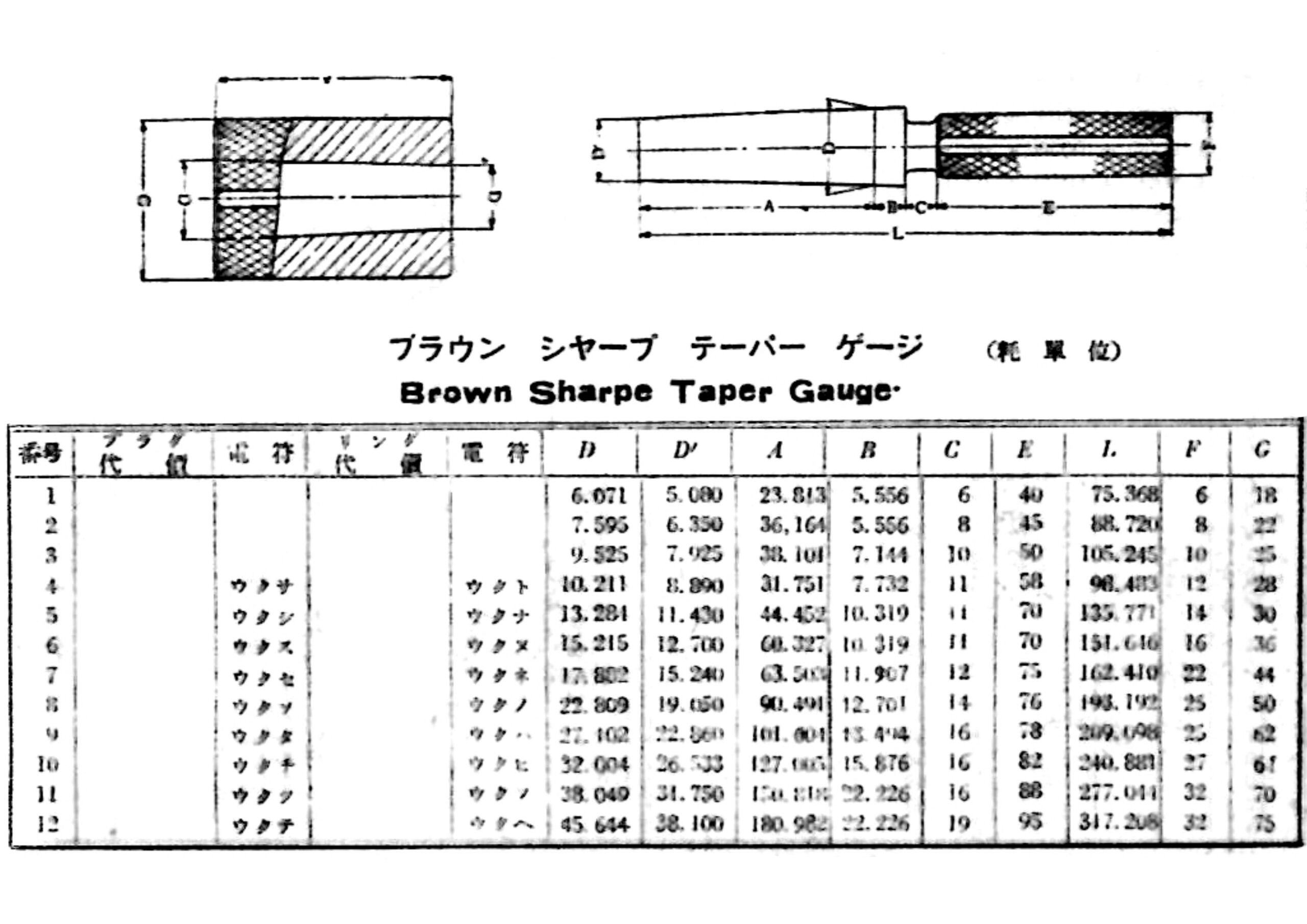 寸法表は参考記載ですので、実際のテーパーの当りはゲージまたは現物合わせにより行って下さい。