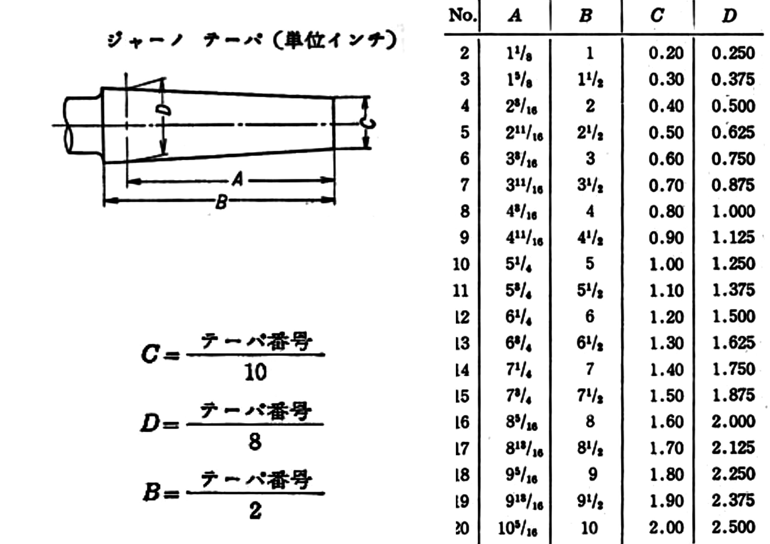 ジャーノテーパの場合、各部分の寸法がテーパ番号と単純な関係になっています。