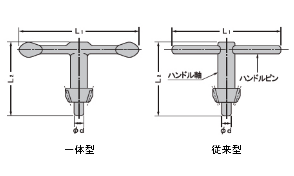 一体型ハンドルが設定されている製品につきましては、ご指定が無い場合は一体型ハンドルを標準で出荷いたします。