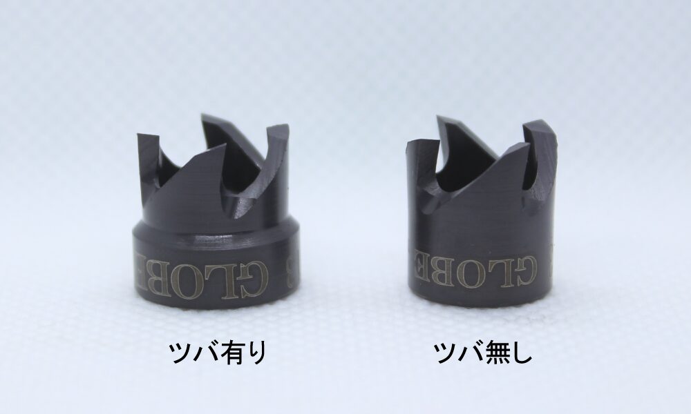 商品番号の刃径の前に「S」が付いているモデルが、ツバ無し仕様となります。