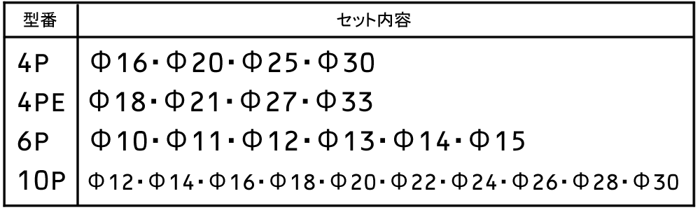 | 6P | Φ10・Φ11・Φ12・Φ13・Φ14・Φ15 |