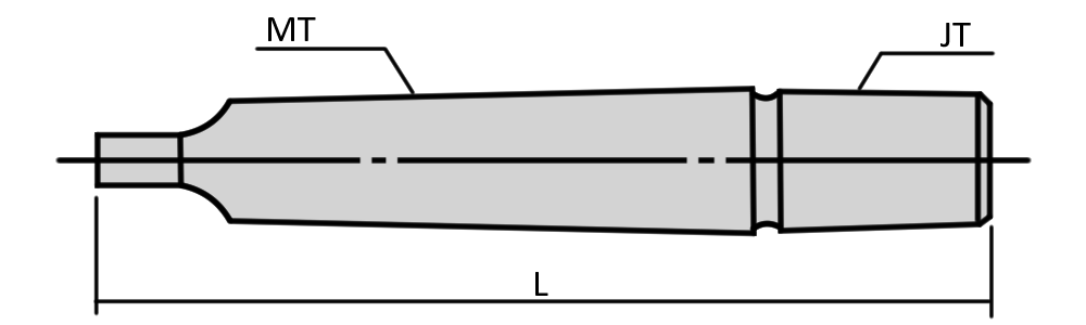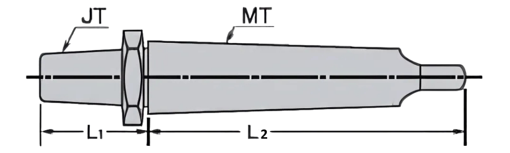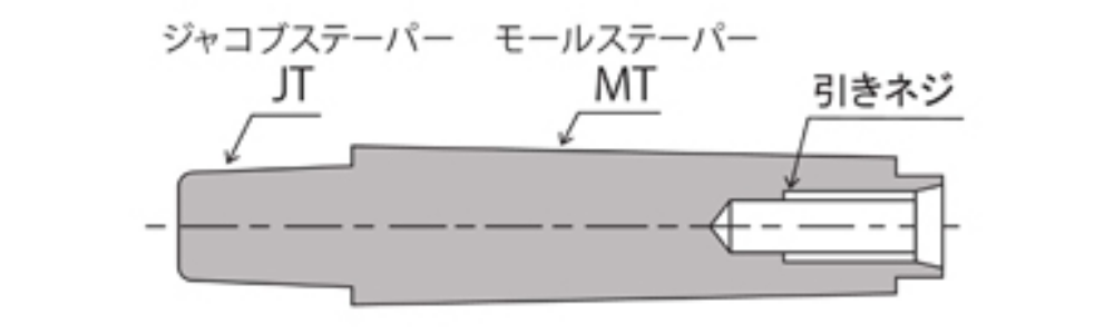 MTシャンクのセンター製品にはタング(抜き取り用の突起部)がありません。スリーブやソケットを介して使用した場合、取り外しが困難になる可能性があります。