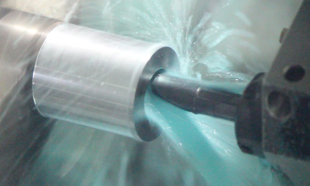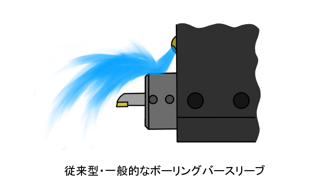 内径旋削加工における「クーラントが刃先に届きにくい」という課題を、スリーブの構造で解決しました。