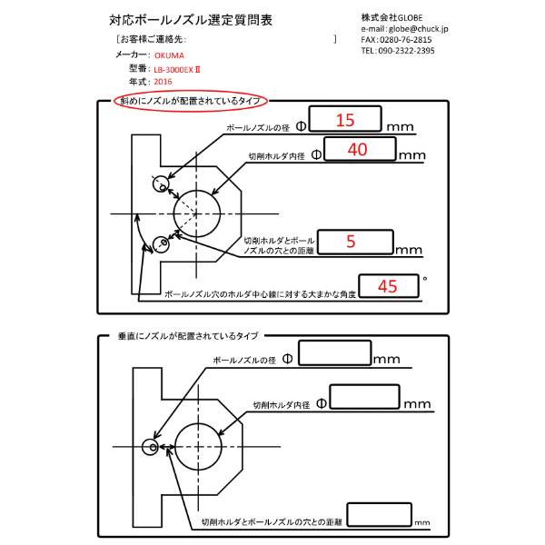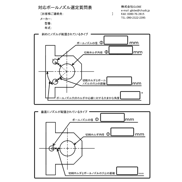 GLOBEスタンダードスリーブ ボーリングバーの装着用 | Φ19.05 Φ25 Φ25.4 Φ32 Φ40 Φ50 | Φ4 Φ5 Φ6 Φ7 Φ8 Φ10 Φ12 Φ14 Φ16 Φ20 (外径Φ25以上のみ) Φ25 (外径Φ32以上のみ) Φ32 (外径Φ40以上のみ) Φ40 (外径Φ50のみ) | 外部給油でクーラントの掛かりを改善 従来と変わらない使用方法で、 より簡単に、より効果的にクーラントを刃先に供給 |
