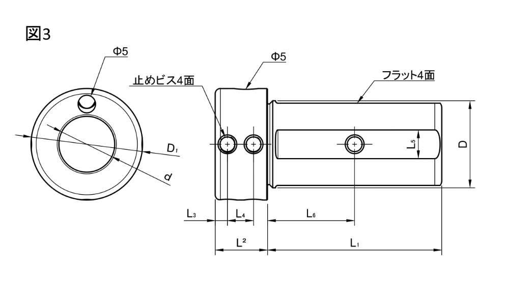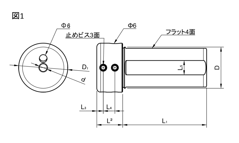 | d | D | L1 | L2 | L3 | L4 | L5 | L6 | D1 | 止ねじ | 図 | |