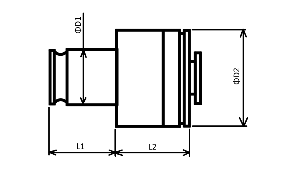 | 型番 | タップ把握能力 | タップシャンク寸法 | L1 | L2 | ΦD1 | ΦD2 | 対応ホルダー | ||
