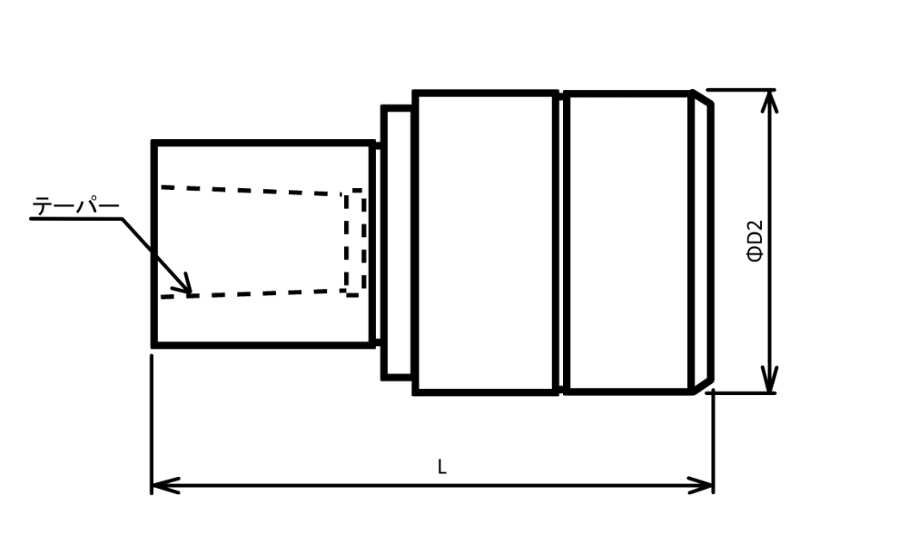 | 型番 | タップ把握能力 | L | ΦD | テーパー | 対応コレット |